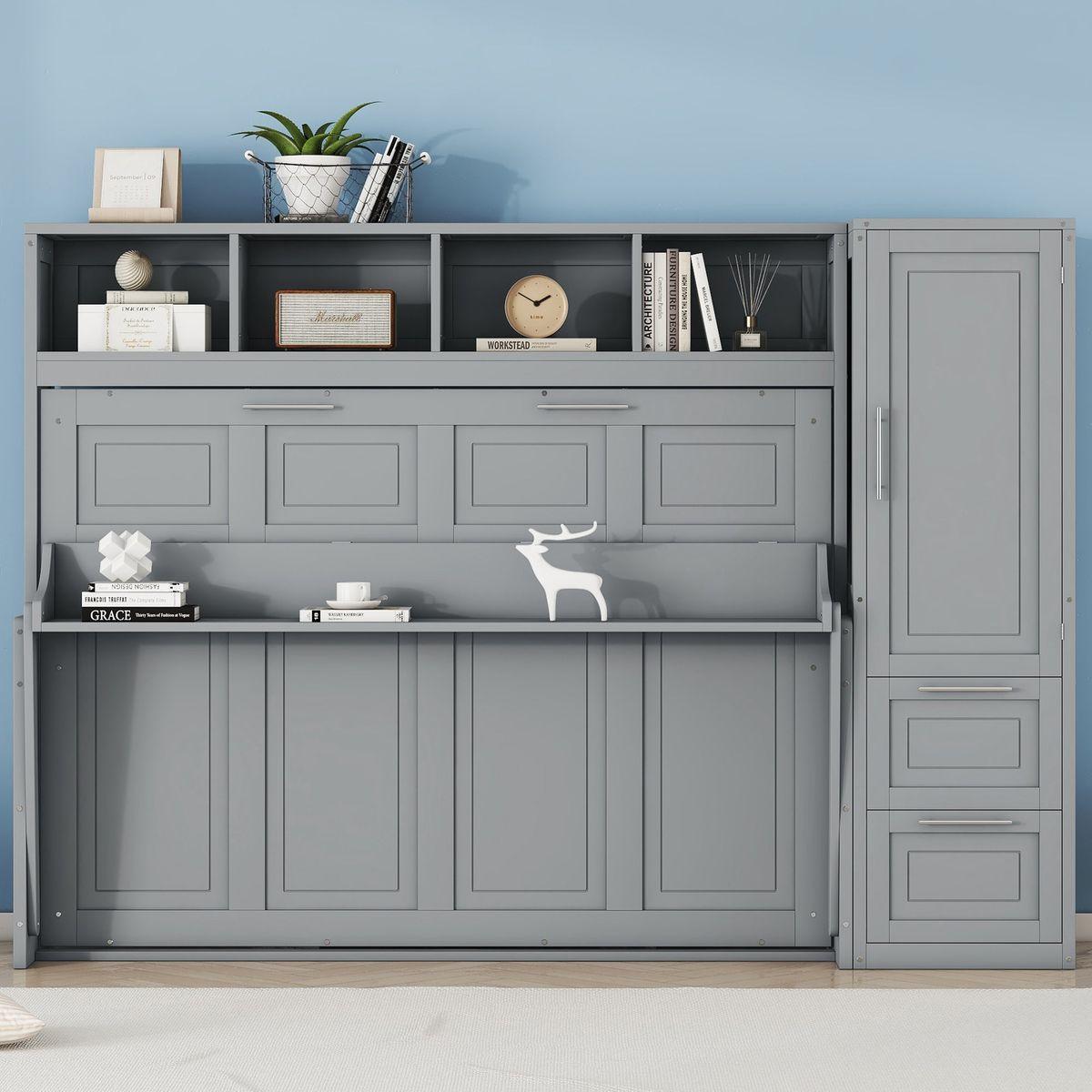 - [Space-saving Design] Transform any room into a multifunctional space with our Murphy Bed. When not in use, simply fold it up to create more floor space for activities. Utilize the under-bed storage shelf to stow away bedding, pillows, or seasonal items, keeping your space tidy and clutter-free.