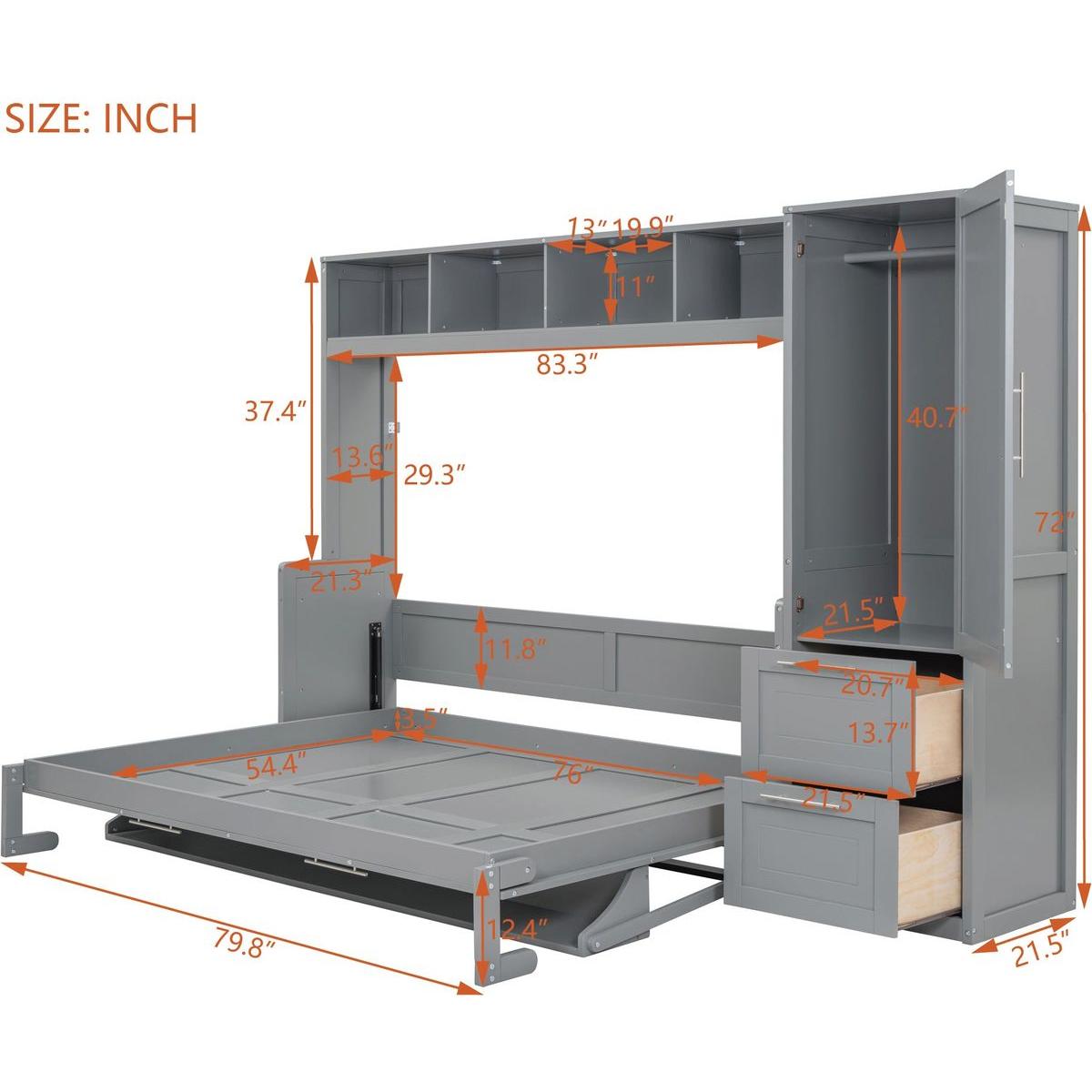 - [Dimensions & Assembly] 107.5'L x 58'W x 72'H(As a bed) 107.5'L x 21.5'W x 72'H(As a cabinet) Mattress not included. Some assembly is required, although we have provided clear instructions and tools.