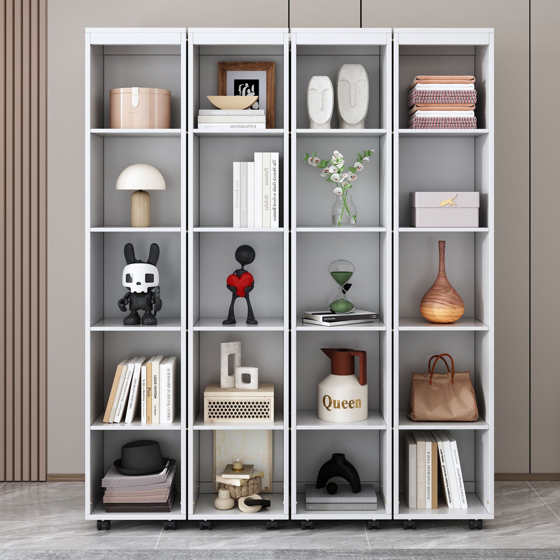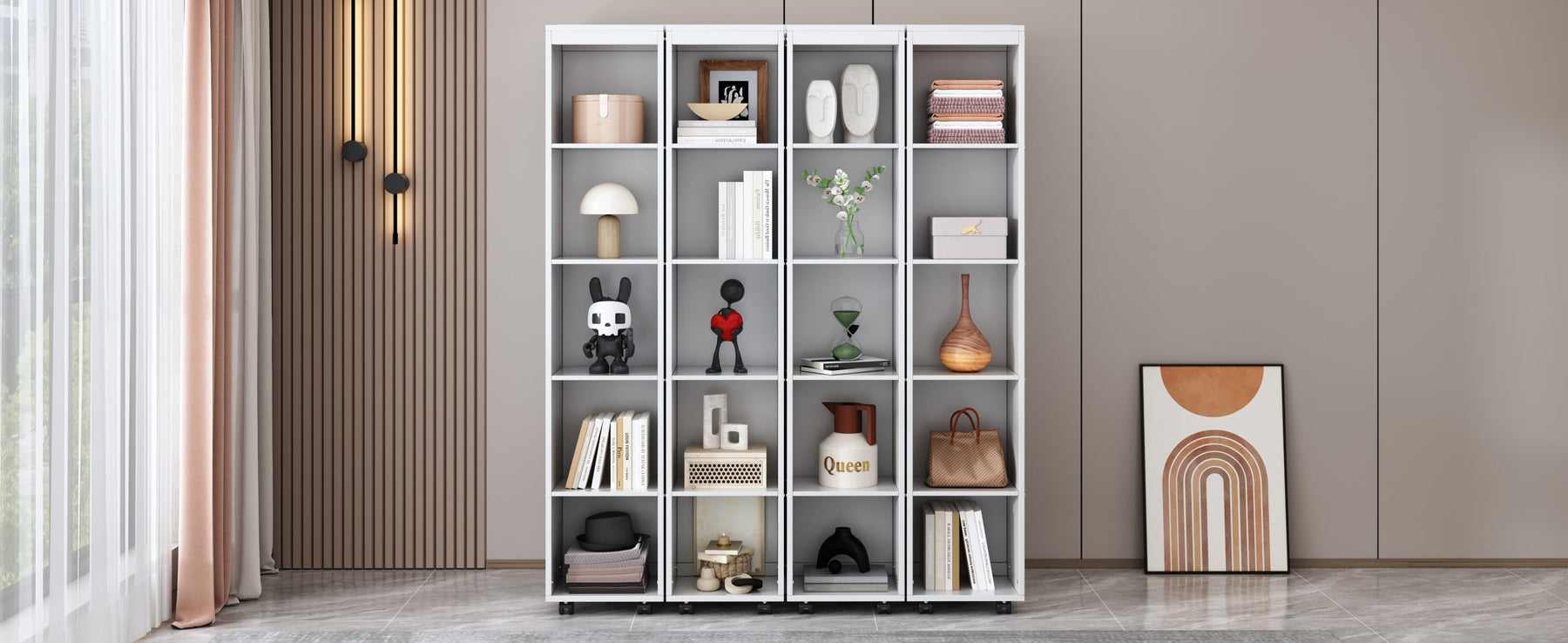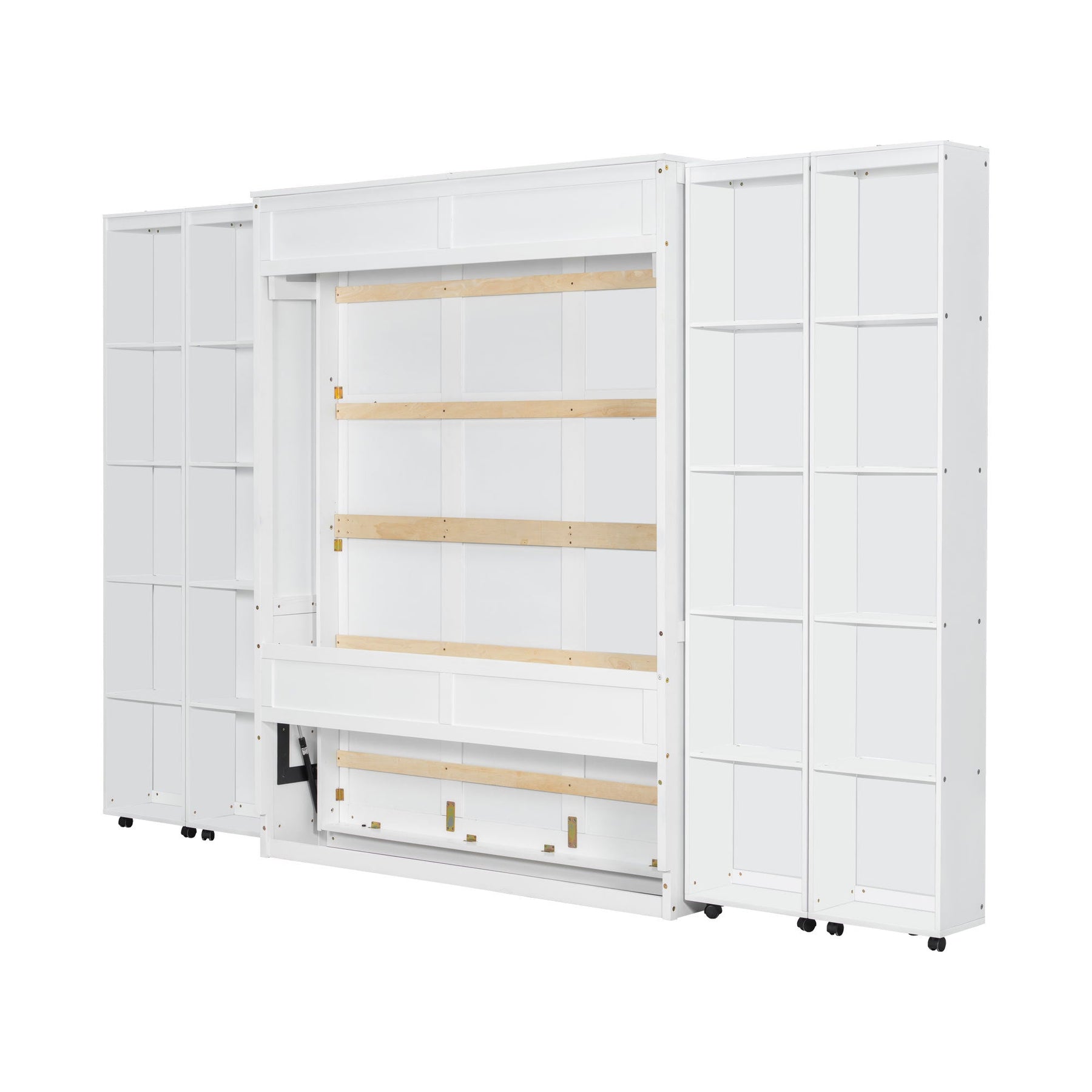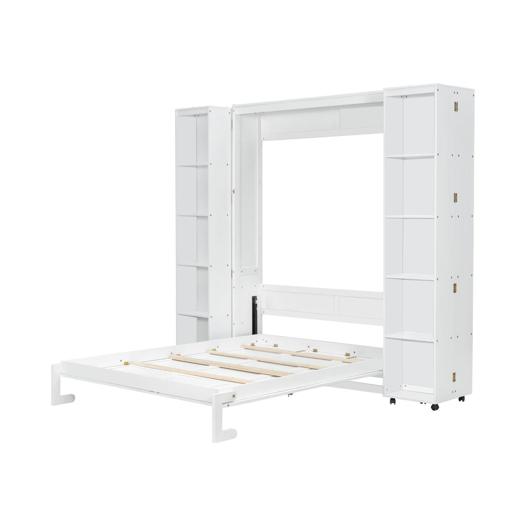 Queen Murphy Bed Wall Bed with Storage Doors, White