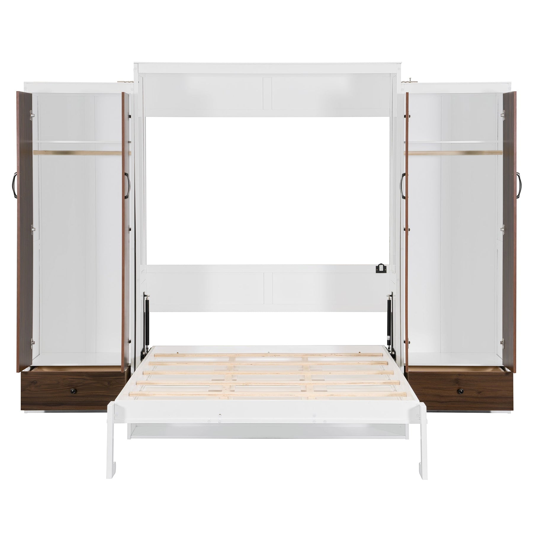 - [Ample Storage with Wardrobes & Drawers] Flanked by two spacious wardrobes (left and right) and two deep drawers, this bed delivers exceptional storage for clothes, linens, and more. The sleek white finish blends effortlessly with any décor, while keeping your space clutter-free.
