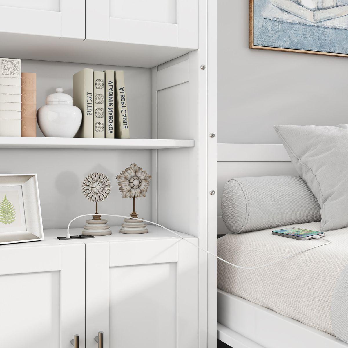 With USB Ports,adjustable shelves and desk,the bookcase and murphy bed Provide multiple uses - placing desk lamps, charging mobile phones, using computers..greatly facilitating daily life