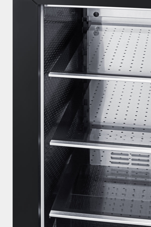 Inside, the CL24BV1PNR includes tri-colored LED lighting featuring amber, blue, and white options for versatile display. Three glass shelves ensure flexible storage to accommodate any size bottle. The angled digital thermostat makes it easy to view the temperature without opening the door. The unit's floor features a dipped flat design to allow you to store certain beverages upright. Additional features include an open door and high temperature alarm, sabbath mode setting, and inverter compressor for improved efficiency and quiet operation.