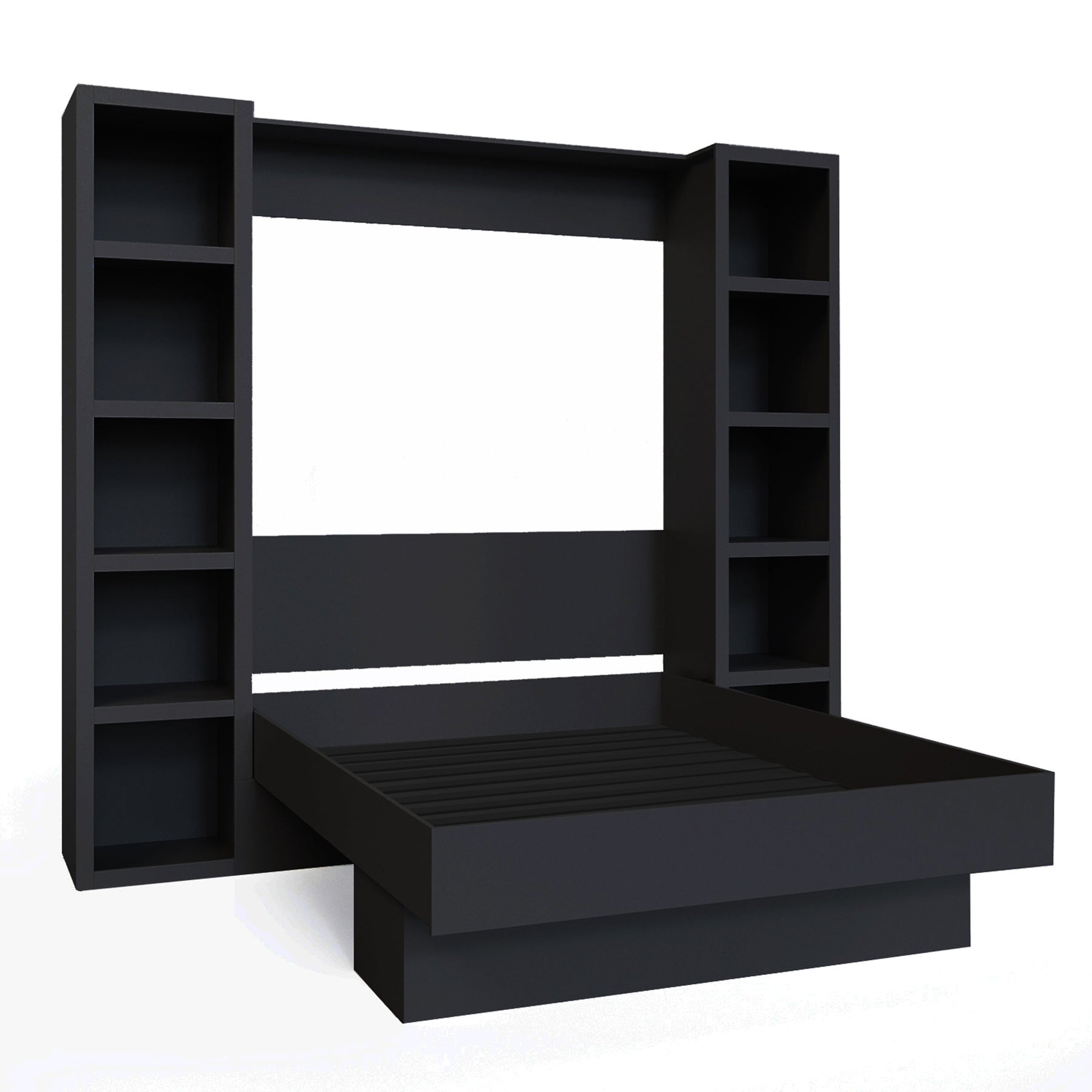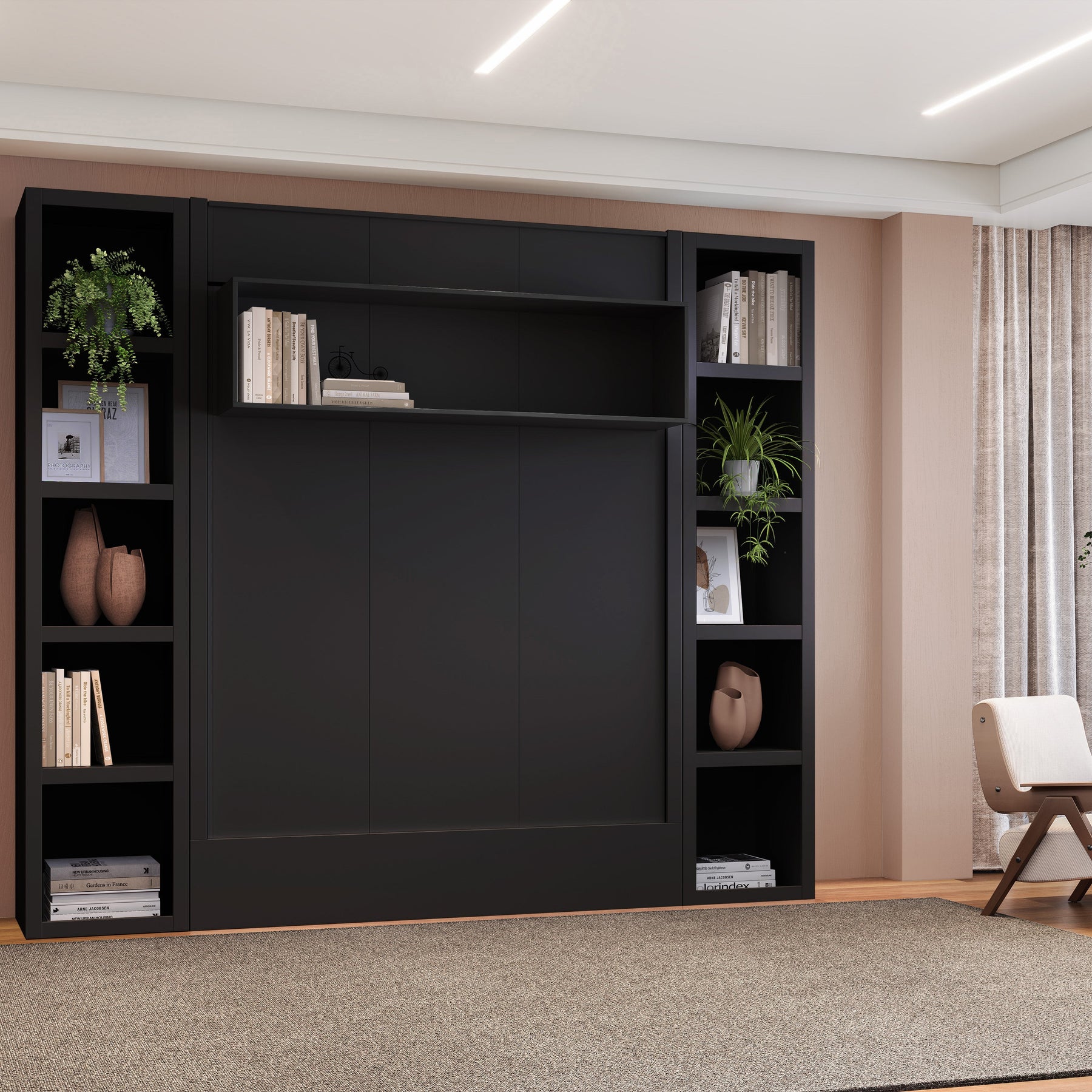 Easy-Lift Full Murphy Wall Bed in Black with Two Bookshelves