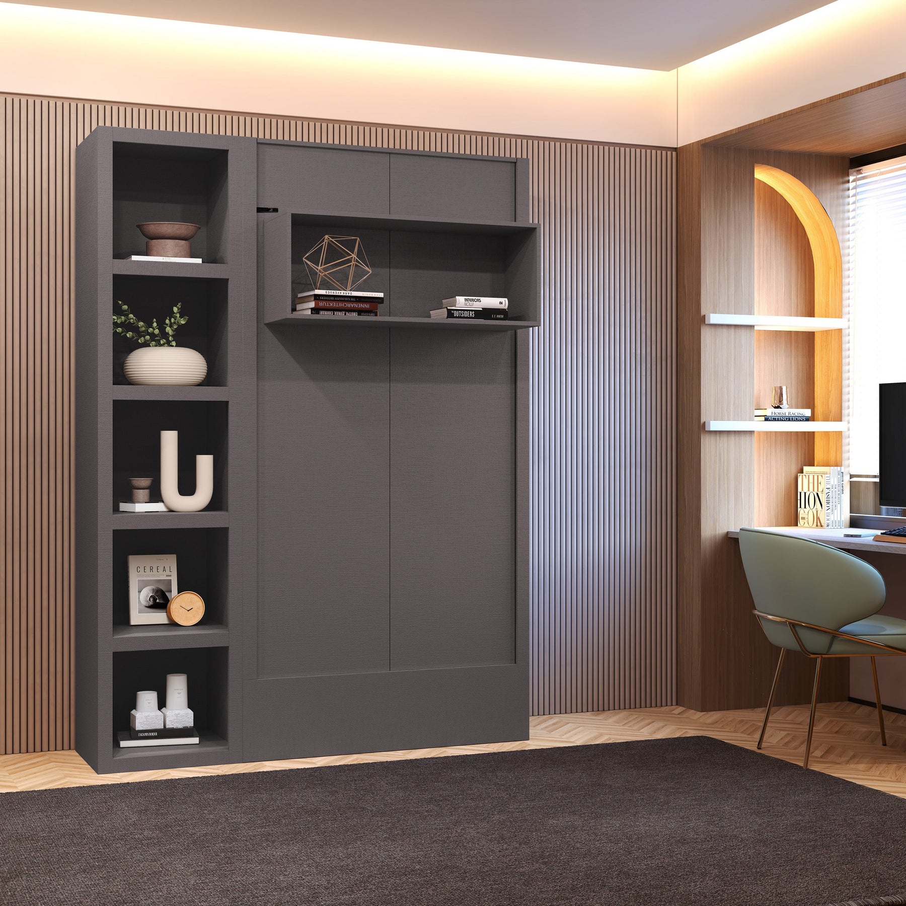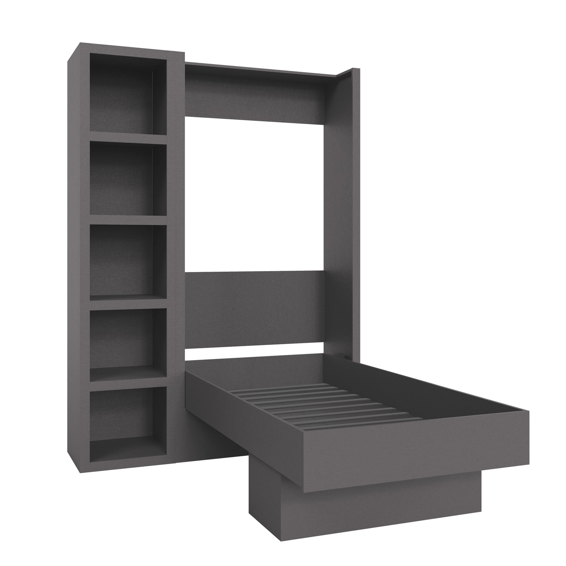 Easy Lift Dark Grey Twin Murphy Bed with Display Shelf and Bookshelf – The Perfect Space-Saving Solution for Any Room